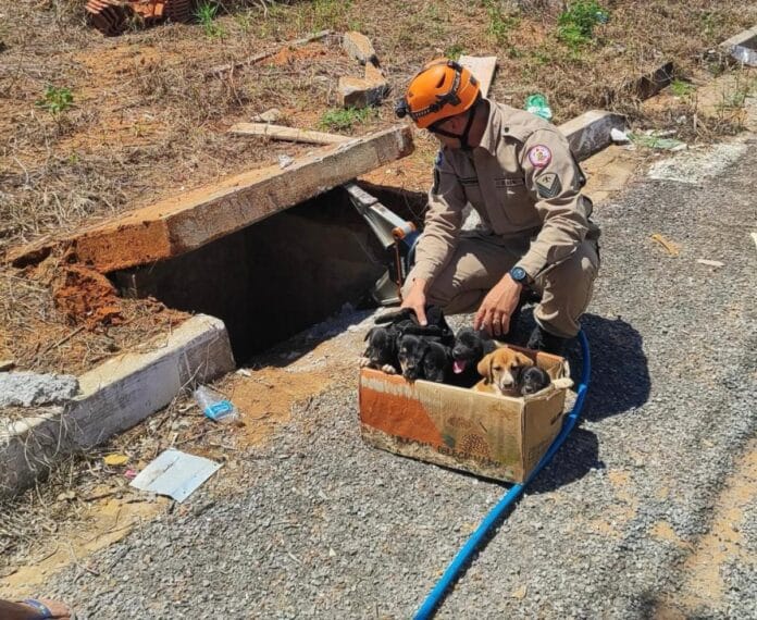 No local, os militares abriram a tampa do bueiro e encontraram os animais, todos em boas condições de saúde e sem ferimentos aparentes.