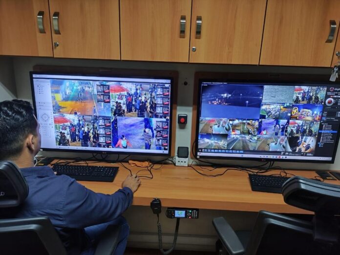 As câmeras de reconhecimento facial estão ligadas à Plataforma de Observação Elevada (POE), um centro de monitoramento móvel utilizado para reforçar o esquema de segurança durante eventos com grande concentração de pessoas.