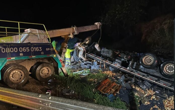 De acordo com o boletim de ocorrência, a Polícia Civil foi acionada por volta de 1h05 para liberar o corpo da vítima, que foi levado ao Hospital Municipal de Cuiabá (HMC). O acidente foi registrado pela concessionária Rota do Oeste às 19h51, quando o motorista perdeu o controle do caminhão, que tombou no km 349 da BR-364, em meio a uma forte chuva.