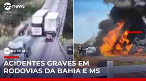 Uma carreta sem freios invadiu a contramão e arremessou um carro de passeio de uma ponte no interior da Bahia. O vídeo mostra o momento em que o caminhoneiro tenta voltar para a pista certa, mas atinge o veículo. Ao todo, três caminhões e um carro se envolveram no acidente. Cinco pessoas ficaram feridas, incluindo uma criança. Já no Mato Grosso do Sul, caminhão-tanque explodiu após tombar em uma rodovia. O trânsito foi interditado por cerca de cinco horas para o trabalho do Corpo de Bombeiros. Apesar da gravidade, ninguém ficou ferido.