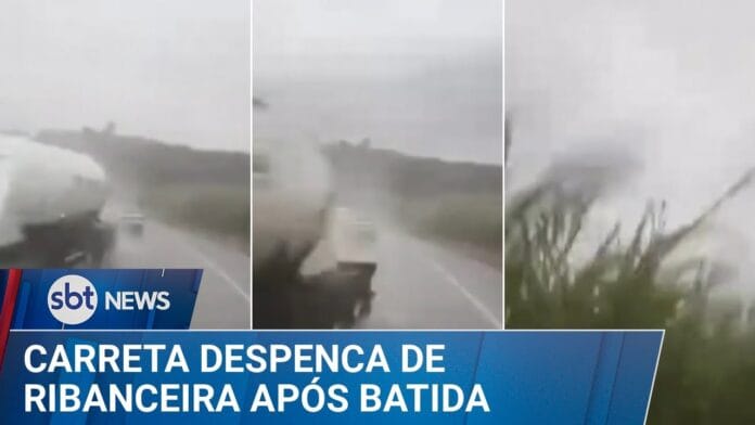 Imagens impressionantes de um acidente envolvendo uma carreta foram registradas por uma câmera de segurança instalada em um dos veículos na BR-262, na altura da cidade de Luz, no interior de Minas Gerais, na quinta-feira (17).