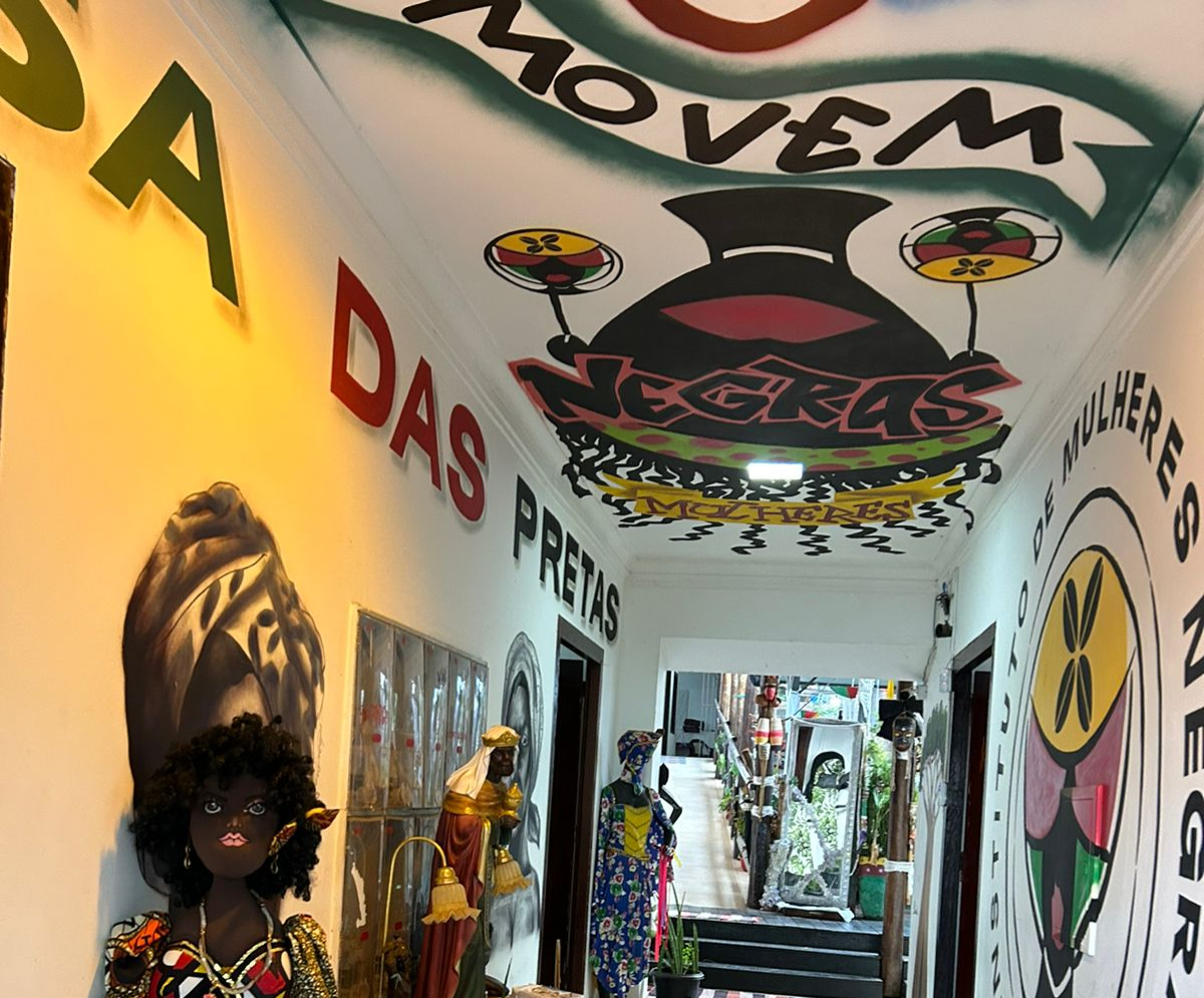 Cada detalhe do espaço foi pensado como instrumento de educação e afirmação. Das paredes pintadas por artistas plásticos de Cuiabá à decoração e às exposições permanentes, tudo remete à cultura negra no Brasil, à força das mulheres negras e às religiões de matriz africana. O imóvel, por si só, também fala. E fala alto.