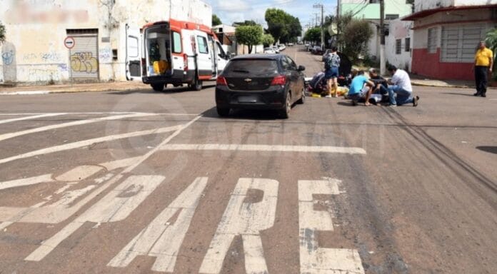 Um homem e uma mulher ficaram feridos em um acidente envolvendo uma motocicleta e um carro na última sexta-feira (28), no Centro de Rondonópolis (212 km ao sul de Cuiabá).