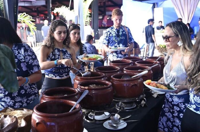 A mesa farta foi um dos grandes destaques da tarde. A feijoada, considerada espetacular pelos presentes, teve a assinatura da chef Leila Malouf, garantindo sabor e qualidade à altura da tradição da festa. No aconchegante espaço lounge, móveis e elementos cenográficos remeteram ao mar de Ibiza, criando um ambiente sofisticado e acolhedor.