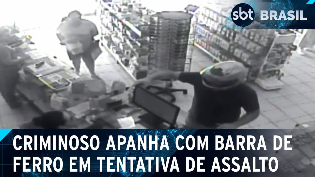 Câmeras de segurança de uma farmácia de Itapetininga, no interior de São Paulo, registraram uma tentativa de assalto em que o suspeito foi surpreendido pela funcionária do local