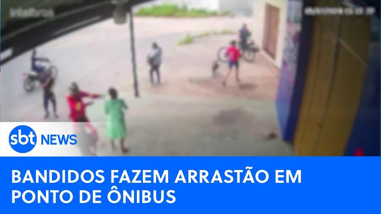 Bandidos fizeram um arrastão em um ponto de ônibus em Vitória (ES), levando celulares das vítimas. A ação violenta aconteceu em plena luz do dia.