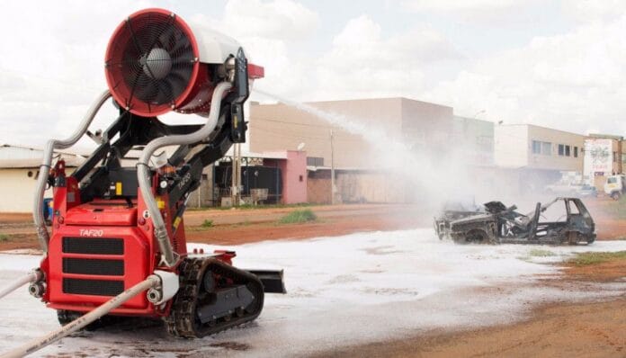 Feito de material resistente ao calor, o robô bombeiro possui câmeras acopladas, possibilitando operação por meio de controle remoto, tanto durante o dia quanto no período noturno. Somado a isso, com a pressão, possui capacidade de mandar jatos de água ou LGE em um raio de distância de até 80 metros. O equipamento é reconhecido por sua agilidade e eficácia no atendimento das emergências de incêndio, principalmente as ligadas a produtos químicos.