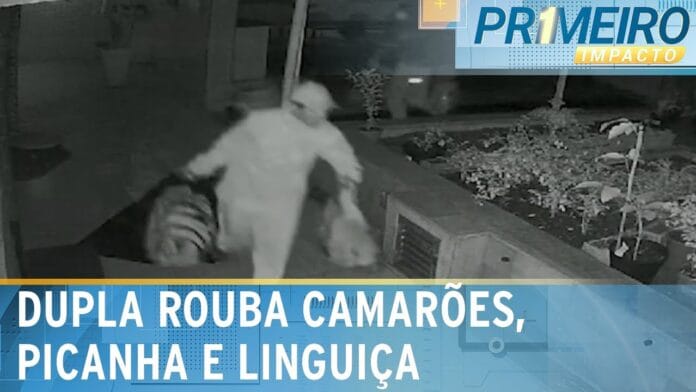 Câmeras de segurança registraram o momento em que uma dupla invadiu um restaurante em Santos (SP) e roubou 55 quilos de alimentos de alta qualidade, incluindo camarões, picanha e linguiça. O estabelecimento já foi alvo de furtos outras cinco vezes. A Polícia Militar foi acionada e localizou um dos suspeitos em casa, onde recuperou parte das carnes e algumas garrafas de bebidas. O outro envolvido no crime ainda está sendo procurado pelas autoridades.