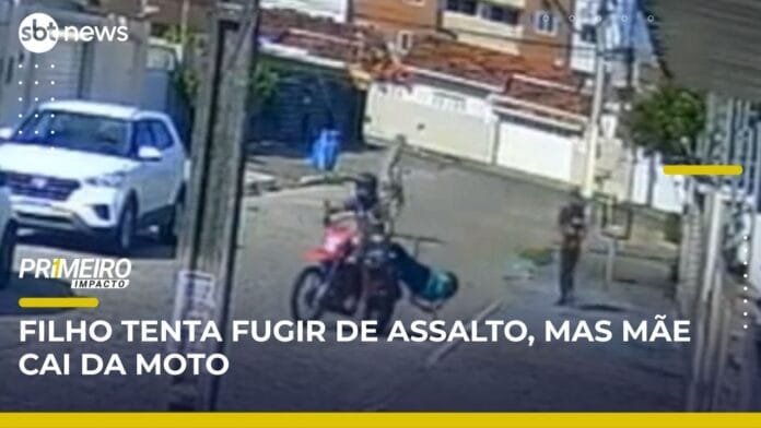 Durante uma tentativa de assalto a uma moto, a vítima estava com a mãe, de 80 anos, na garupa. Ele se assustou com a possibilidade de ser roubado, mas não contou com a senhora, que acabou caindo do veículo.