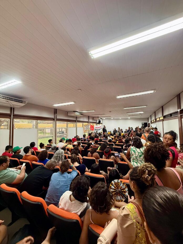 Mas a formalidade não conteve a força do público: a cada fala dos defensores das mineradoras, indígenas e quilombolas reagiam com palavras de ordem e cantos tradicionais. O auditório, preparado para cerca de 90 pessoas, recebeu quase o dobro, com participantes ocupando antessala, corredores e permanecendo de pé até o fim.