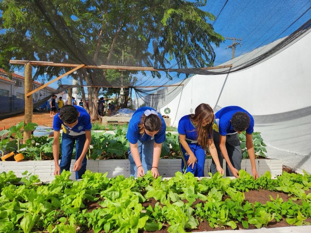 Além de alimentar os alunos, o excedente da produção das hortas é doado a estudantes em situação de vulnerabilidade, ampliando o impacto social do projeto.