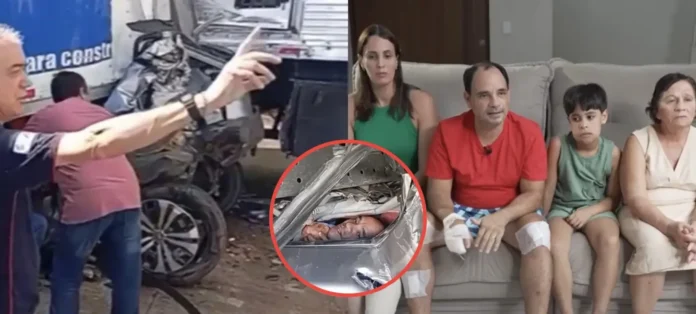 Um carro com cinco pessoas da mesma família foi esmagado entre duas carretas em Joaquim Gomes (AL). Carlos Henrique viajava com a esposa, Sâmia Kelly, os filhos de 7 e 12 anos e a sogra, de 76. Uma das carretas não conseguiu frear após uma curva e atingiu outros cinco veículos.