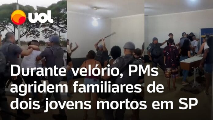 Vídeos que circulam nas redes socais mostram policiais militares agredindo familiares no velório de dois jovens mortos em um suposto confronto com a PM em Bauru (SP). Ao menos cinco PMs entraram no velório. Vídeos gravados por pessoas que se despediam dos jovens mostram que os agentes tentaram render o irmão de um dos mortos, que estava com a mãe ao lado do caixão.