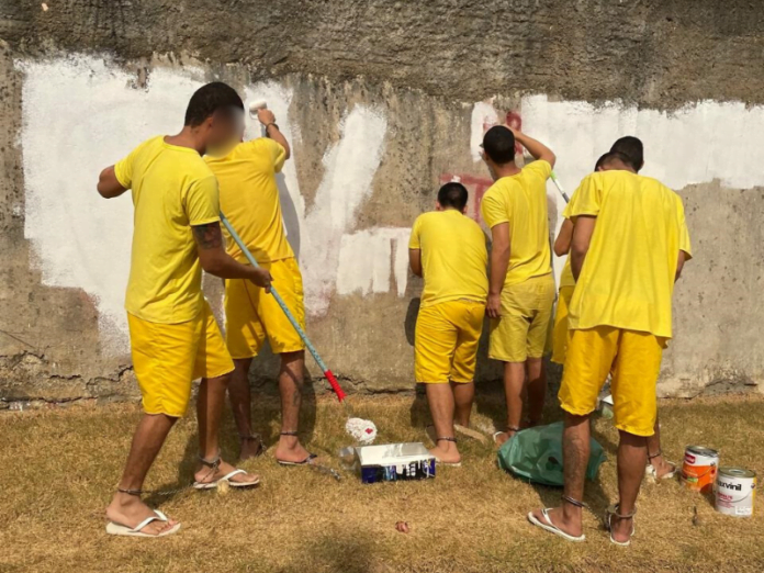 Forças de segurança utilizam mão de obra de reeducandos para remover pichações