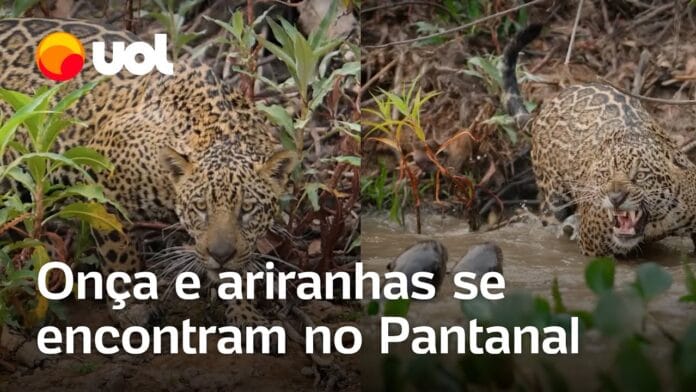Fotógrafo grava encontro e ‘confronto’ de onça com ariranhas no Pantanal; veja o vídeo