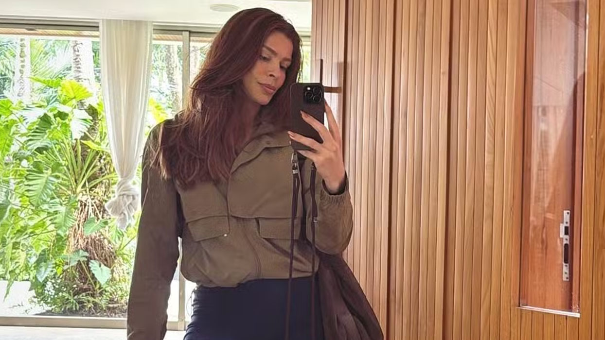 aGrazi Massafera, de 43 anos, compartilhou neste sábado (30), um selfie pós-treino em frente ao espelho. De top e short, a atriz exibiu o abdômen definido e as coxas torneadas.