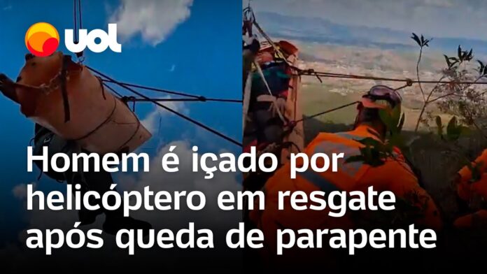Um homem caiu durante um voo de parapente na manhã deste sábado (20), na Grande Belo Horizonte, e precisou ser resgatado pelos bombeiros de helicóptero.