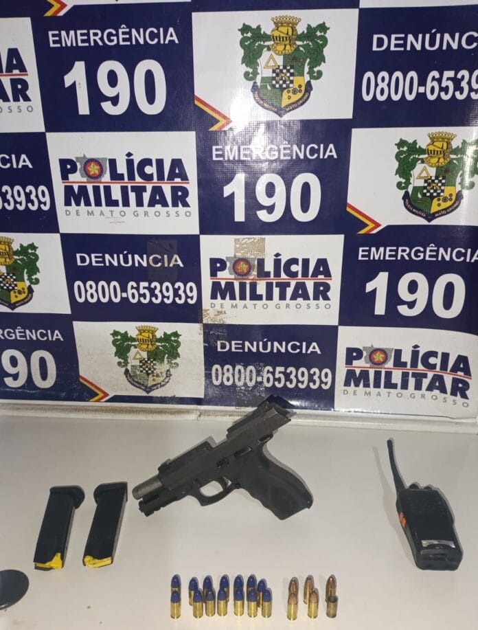 Durante a abordagem, o condutor do Fiat Strada indicou o local onde havia escondido a arma e assumiu a autoria do disparo. Em buscas no interior do veículo, os policiais localizaram uma pistola Taurus calibre 9mm, com dois carregadores e 19 munições intactas, além de um estojo deflagrado. Também foram encontradas garrafas de cerveja e constatado forte odor de álcool.