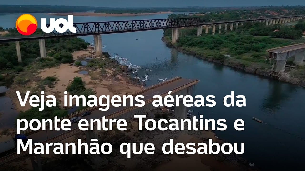 Imagens aéreas mostram um carro preso em um fenda que se abriu após a ponte entre o Tocantins e o Maranhão desabar.
