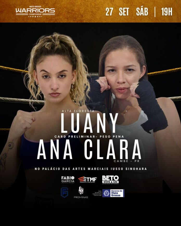 Ana Clara Montini, do Paraná, enfrentará Luany Rocha, representante de Mato Grosso, no card preliminar peso pena (até 65 kg). O combate será um dos destaques da noite, que contará com 12 lutas casadas dos masculino, sendo duas valendo cinturão.