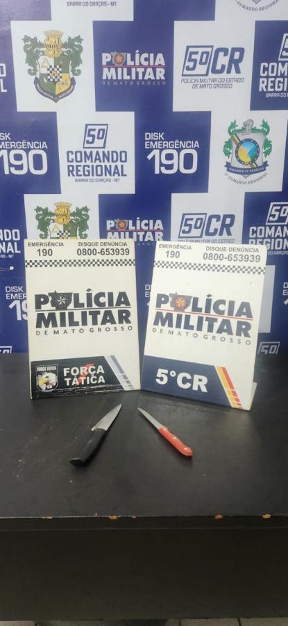 Com a suspeita, os policiais apreenderam as armas brancas utilizadas na agressão, além de pertences pessoais. A mulher foi presa em flagrante e encaminhada à Central de Atendimento da Polícia Militar, sendo posteriormente apresentada à Delegacia de Polícia Civil, onde foram adotadas as providências legais cabíveis.