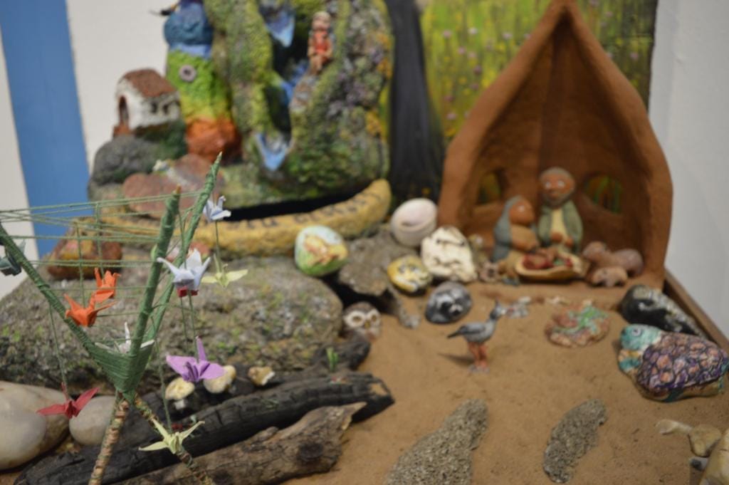Para a exposição, os artistas usaram materiais como sucata e reciclados de papel e plástico, matérias-primas que acentuam a urgência de uma reflexão sobre sustentabilidade e responsabilidade social.