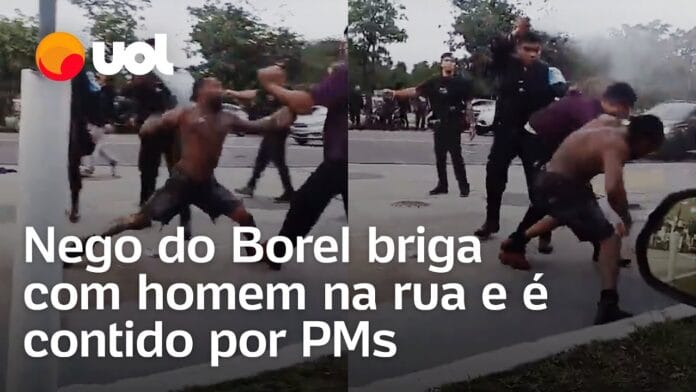 Nego do Borel troca socos com homem na rua e é contido por PMs; veja