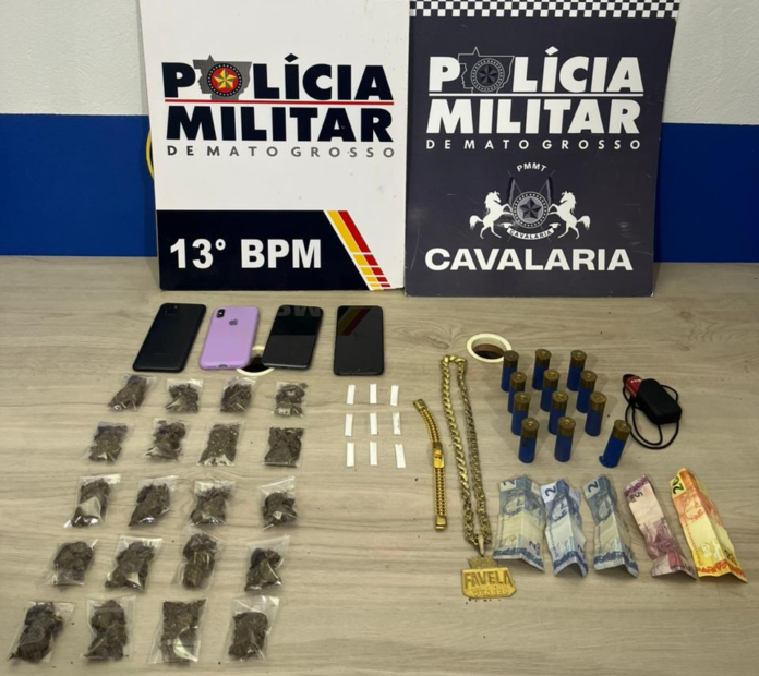 Em Lucas do Rio Verde, a primeira ocorrência foi registrada no bairro Tessele Júnior, após denúncias indicarem que um homem estaria vendendo drogas em uma residência na Rua Opala. No local, os policiais encontraram porções de maconha, celulares e dinheiro em espécie. O suspeito e sua companheira, que também manipulava os entorpecentes, foram levados à delegacia.
