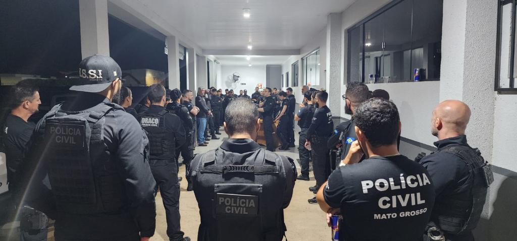 As diligências ocorrem simultaneamente em Peixoto de Azevedo, Alto Garças, Várzea Grande e Rio Branco (AC). Os trabalhos são conduzidos pela Delegacia de Peixoto de Azevedo, com o apoio das Delegacias Regionais de Alta Floresta e Sinop, além da Polícia Civil do Acre. Segundo as apurações, a organização criminosa mantinha uma estrutura dedicada a levantar informações sobre alvos da facção rival, como endereços, fotos e dados pessoais, além de reunir veículos e armamentos para a prática de crimes.