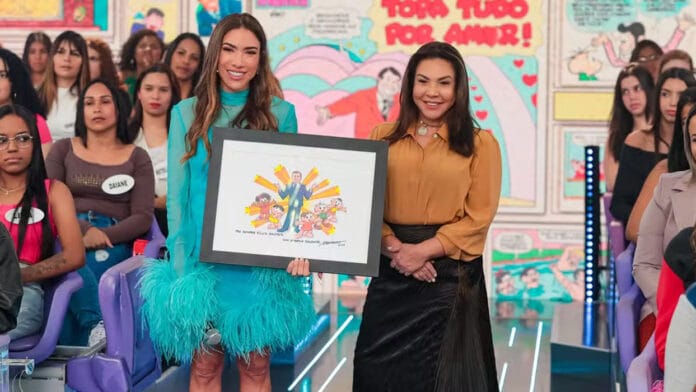 A apresentadora Patrícia Abravanel, filha de Silvio Santos viveu um momento especial com Mônica Sousa, filha do cartunista Mauricio de Sousa, que inspirou a personagem Mônica, a mais famosa personagem das histórias em quadrinhos no Brasil. Ela entregou em mãos para a apresentadora uma pintura exclusiva, feita por Mauricio de Sousa, de 89 anos, em homenagem a Silvio Santos (1930-2024).