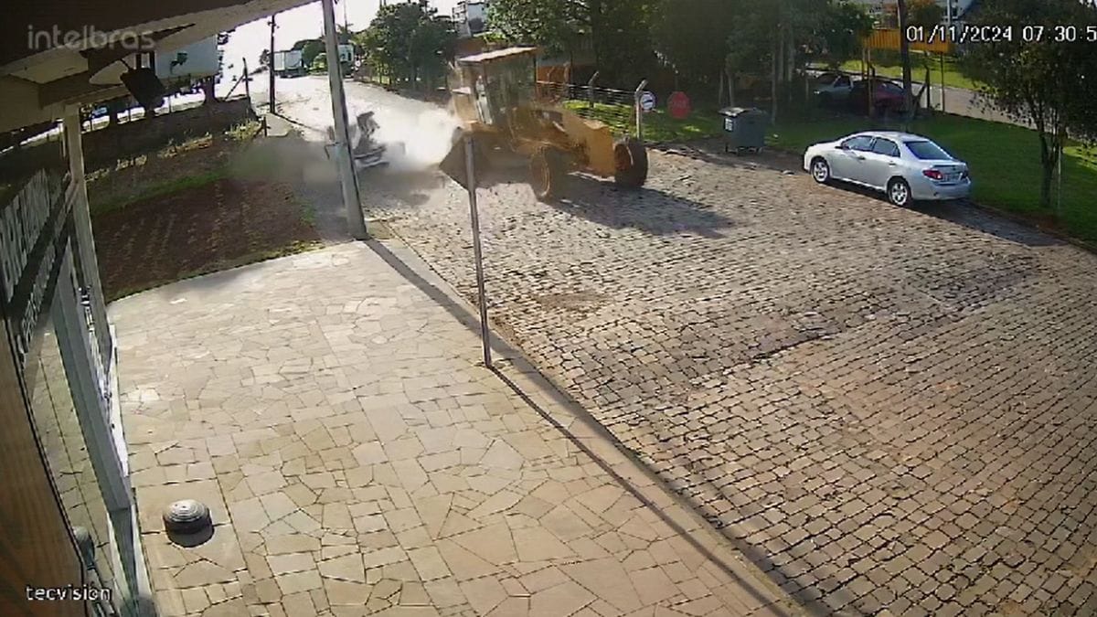 Maquinário da prefeitura transitava pela Avenida Borges de Medeiros quando houve o incidente. Ninguém ficou ferido