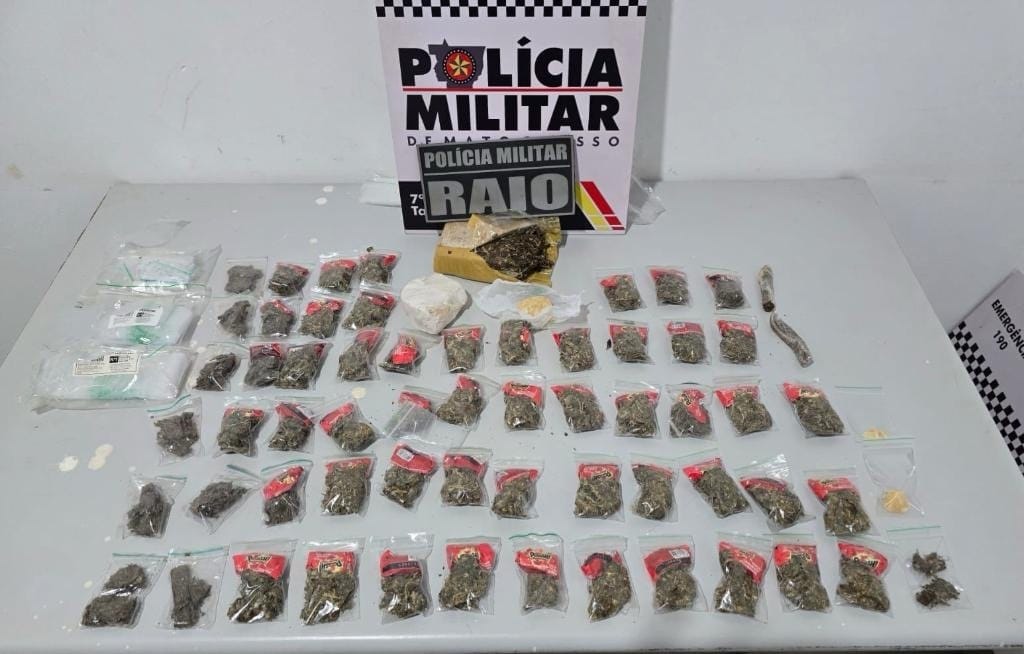 Um homem, de 18 anos, foi preso por tráfico ilícito de drogas pela Polícia Militar, na noite desta terça-feira (27.5), em Tangará da Serra. Com o suspeito, a PM apreendeu 65 porções de entorpecentes entre maconha e pasta base de cocaína.