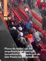 Torcedores do São Paulo Futebol Clube foram atingido por uma placa de ferro da arquibancada oeste do Estádio do MorumBis durante o jogo desta quarta-feira (14).