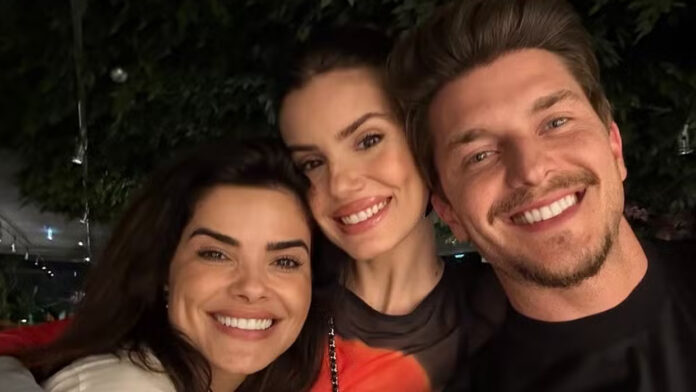 Vanessa Giácomo, 42 anos, encantou os seguidores ao compartilhar um encontro especial com Camila Queiroz, 32, e Klebber Toledo, 39, nesta segunda-feira (4), em um restaurante em Lisboa, Portugal. Madrinha de casamento do casal, a atriz se declarou com carinho nas redes sociais: “Amo e protejo esse casal com todas as minhas forças”.
