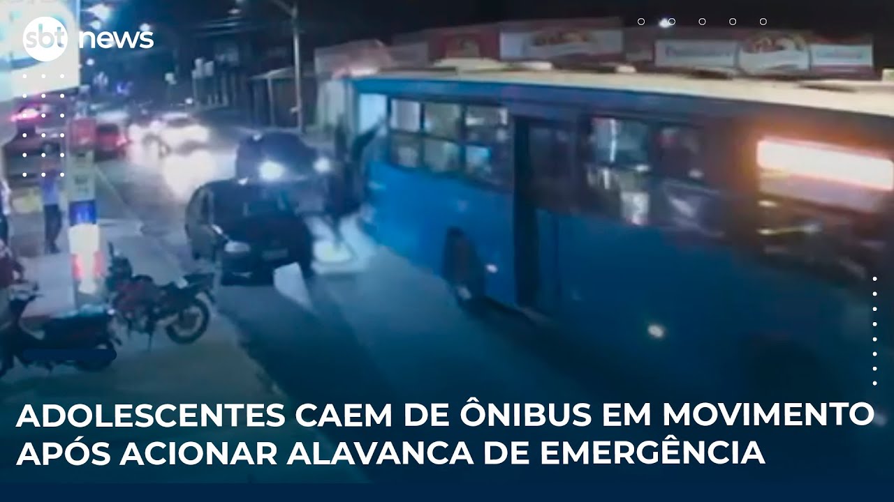 Duas câmeras de segurança registraram o momento em que dois adolescentes caem de um ônibus em movimento no município de Novo Gama (GO), no Entorno do Distrito Federal. O caso aconteceu na noite dessa quarta-feira (22), por volta das 19h, na Rua 43, no bairro Parque Estrela Dalva VI.