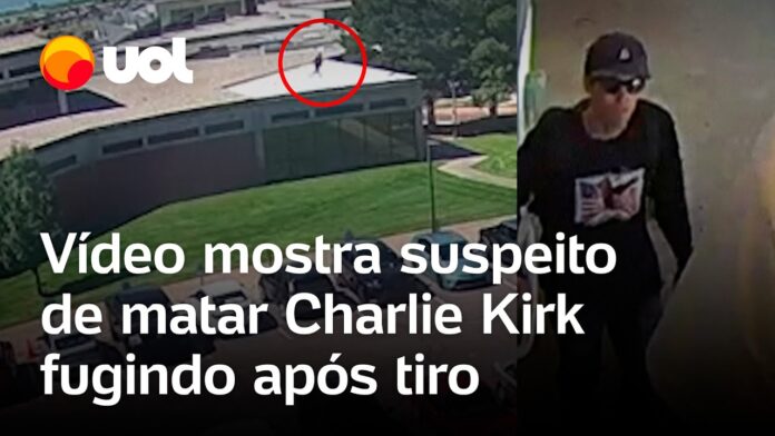 O FBI divulgou ontem um novo vídeo que mostra o suspeito de assassinar Charlie Kirk pulando do telhado de um prédio na Universidade de Utah Valley segundos após disparar o tiro.