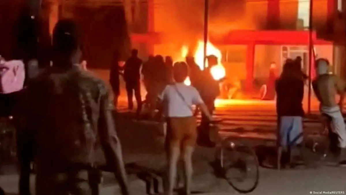 Várias pessoas assaltaram na madrugada deste sábado (14) uma sede do Partido Comunista (único) na província de Ciego de Ávila, cerca de 460 quilômetros de Havana O protesto é contra os prolongados apagões e a falta de alimentos Segundo vídeos que circulam nas redes sociais, vários manifestantes invadiram o prédio do Partido Comunista e retiraram documentos, computadores e móveis, que posteriormente queimaram na rua Um breve relatório do jornal provincial Invasor, que confirma os protestos, o assalto à instituição governamental e a queima de bens na via pública, informou que, como resultado desses “atos de vandalismo”, cinco pessoas foram detidas