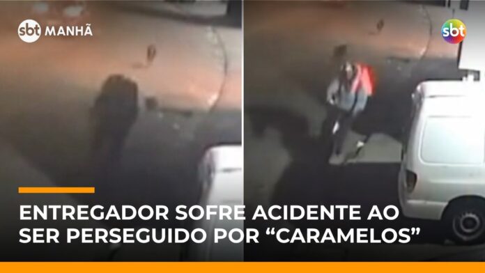 Um entregador de aplicativo sofreu um acidente após ser perseguido por cachorros de rua na avenida Presidente Médici, em Osasco, na Grande São Paulo. Câmeras de segurança registraram o momento em que ele colide com um carro estacionado ao tentar fugir dos animais. A vítima teve cortes no rosto, quebrou o dedo e perdeu a bicicleta. Pedestres ajudaram após o acidente.