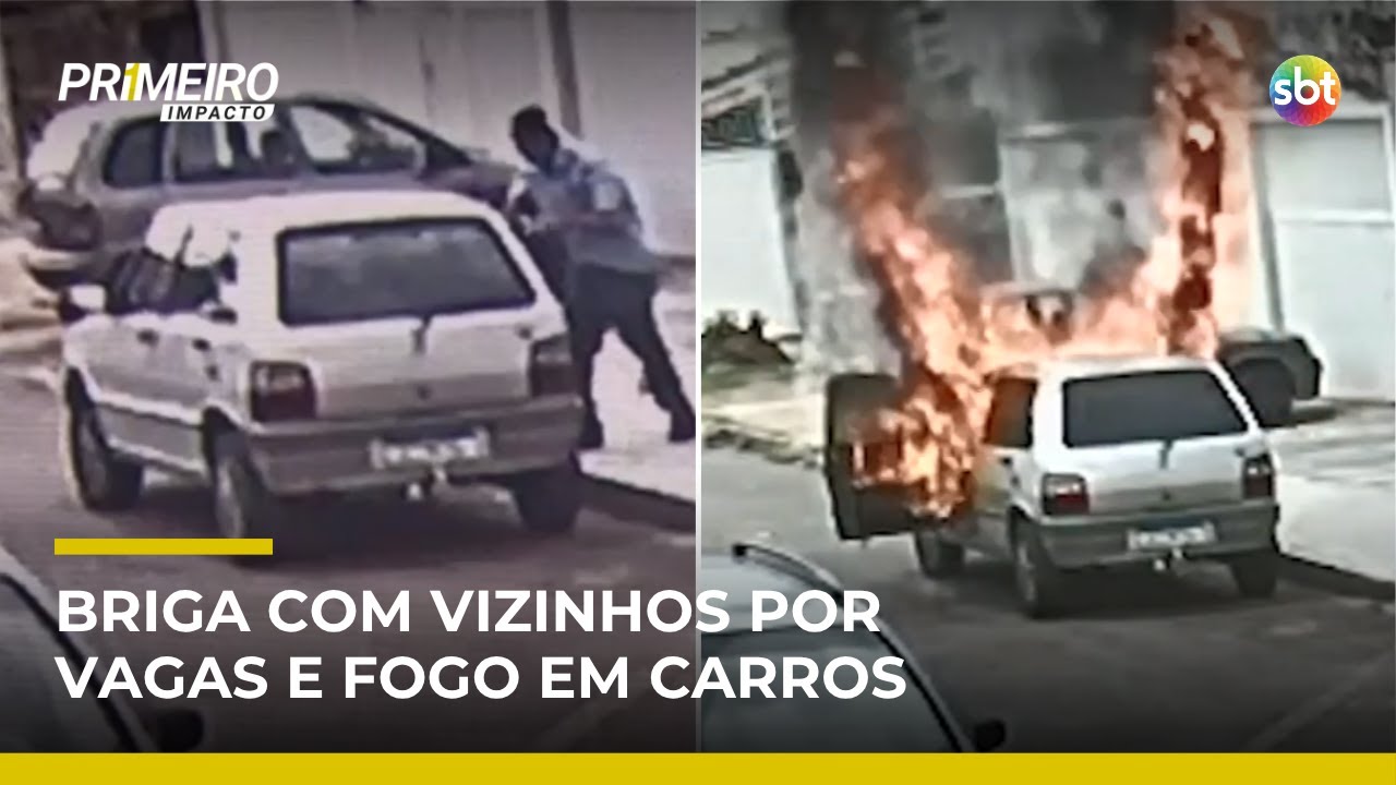 Uma discussão entre vizinhos por causa de carros estacionados terminou em incêndio em Brasília. Imagens mostram um homem quebrando vidros dos veículos, jogando líquido inflamável e ateando fogo com fósforos. Os bombeiros foram acionados e controlaram as chamas, mas os carros ficaram destruídos. Ninguém se feriu e o suspeito foi preso em flagrante