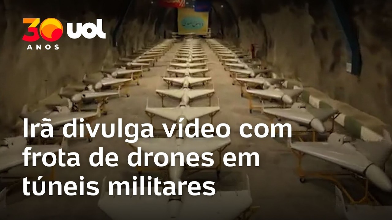 O governo do Irã divulgou um vídeo, por meio da agência estatal Fars News Agency, mostrando uma frota de drones armazenada em túneis militares, em demonstração de força diante da escalada do conflito contra Estados Unidos e Israel.