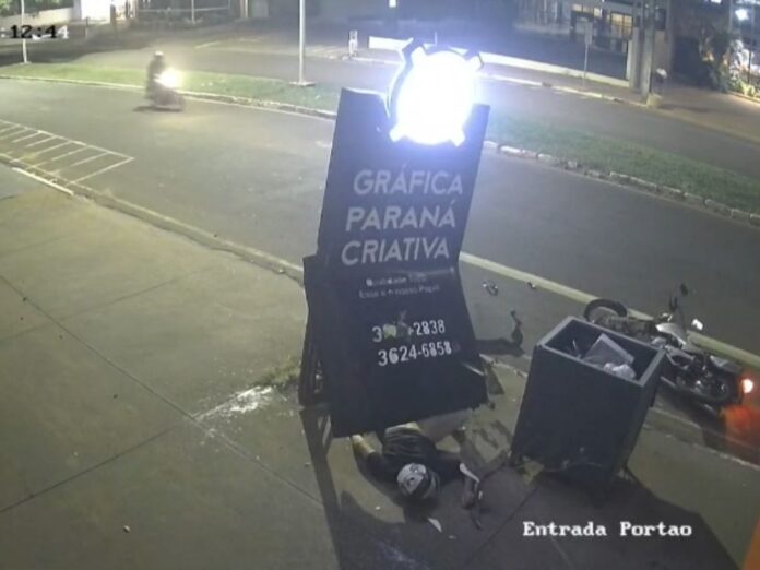 Veja Vídeo – mostra violenta colisão de motociclista contra placa de gráfica em avenida no Paraná