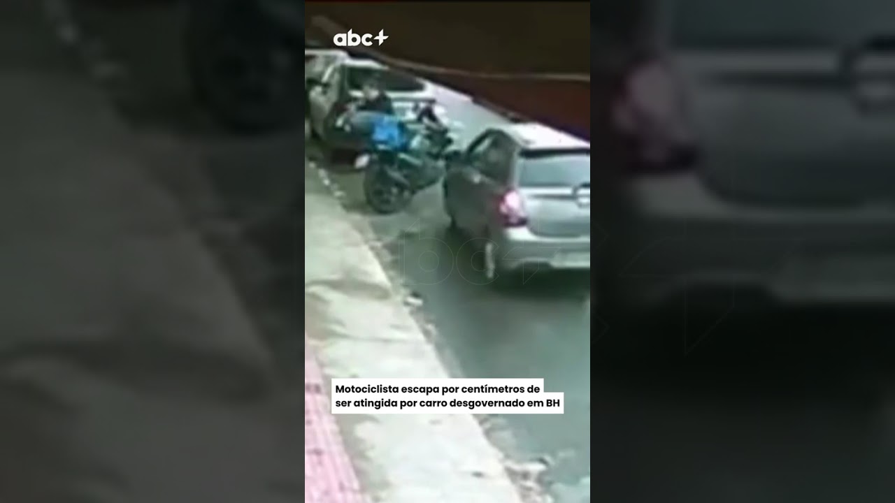 Uma motociclista escapou por poucos segundos de ser atropelada após um carro desgovernado atingir sua moto e outros veículos estacionados na Rua Salgueiro, no bairro Ipiranga, na Região Nordeste de Belo Horizonte, na tarde desta segunda-feira (29).
