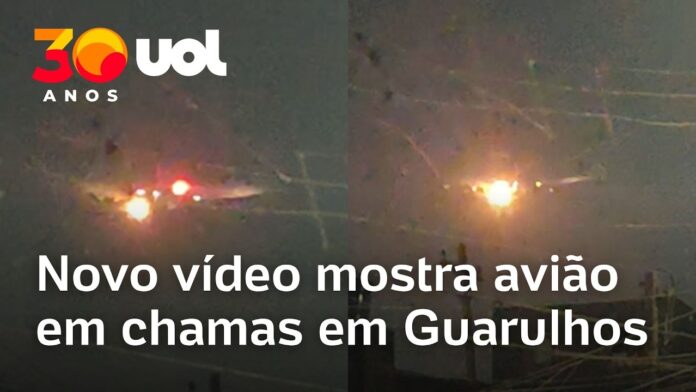 Veja Vídeo – Novo vídeo mostra turbina de avião em chamas em Guarulhos (SP); veja