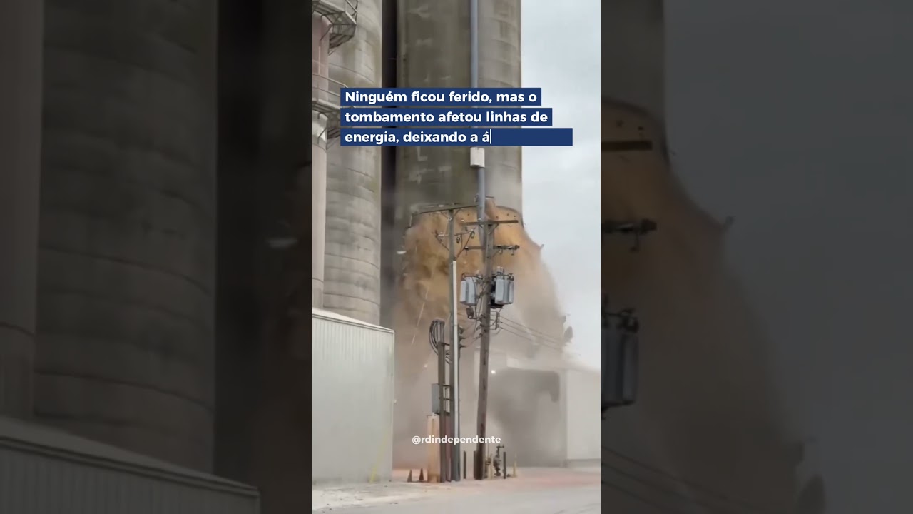 Um silo de grãos, aparentemente com soja, partiu ao meio e desabou nessa quarta-feira (15), na cidade norte-americana de Martinton, no estado de Illinois. Vídeo compartilhado nas redes sociais mostra trabalhadores correndo para não serem atingidos pela estrutura. Não houve relatos de feridos e nem de vítimas fatais. Antes de o silo chegar completamente ao chão, é possível enxergar uma faísca no topo. Os funcionários da agroindústria relataram que tinham acabado de limpar a área quando um membro da equipe avistou uma rachadura no armazém vertical.