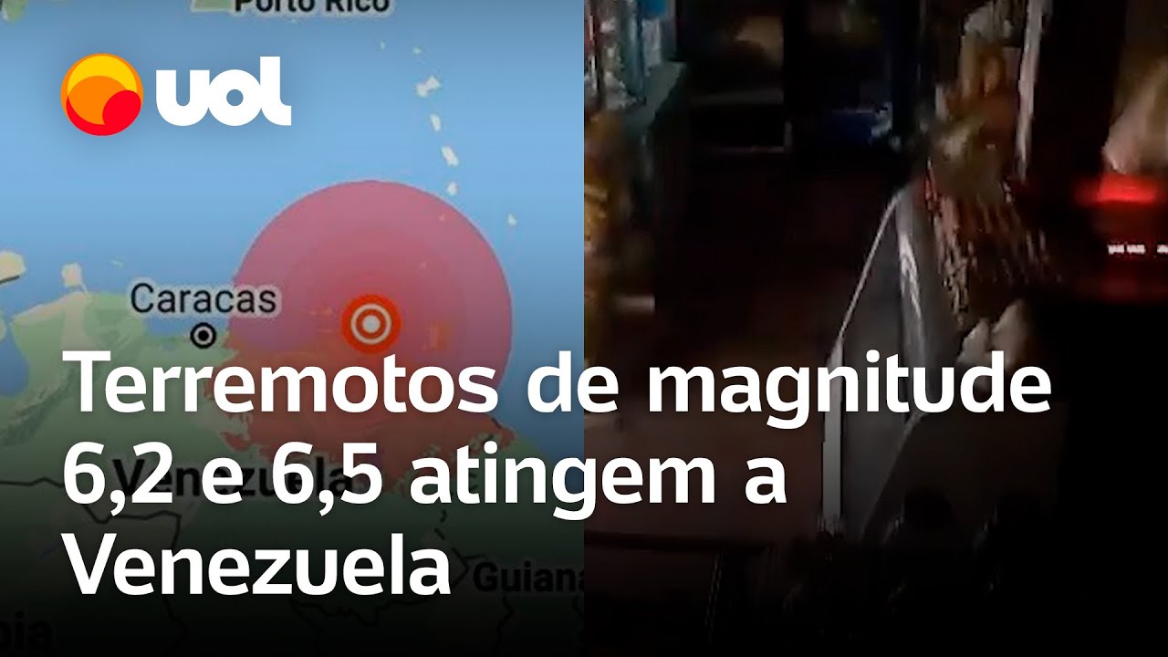 A Venezuela foi atingida por dois terremotos na noite desta quarta-feira (24), segundo o Serviço Geológico dos Estados Unidos. O primeiro tremor teve magnitude 6,2, e o segundo, 6,5. Os abalos foram sentidos em Caracas e em grande parte do oeste do país, de acordo com a agência de notícias AFP. Cerca de 80% da população da Venezuela vive em zonas de alta ameaça sísmica.