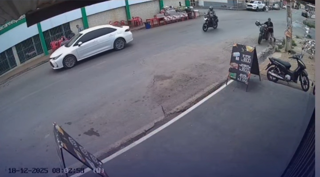 Uma câmera de segurança registrou um criminoso empurrando uma moto furtada em frente a um açougue no bairro Santa Isabel. O caso ocorreu em Várzea Grande. O dono do veículo pede ajuda da polícia e da população para localizar a moto, usada para trabalho.