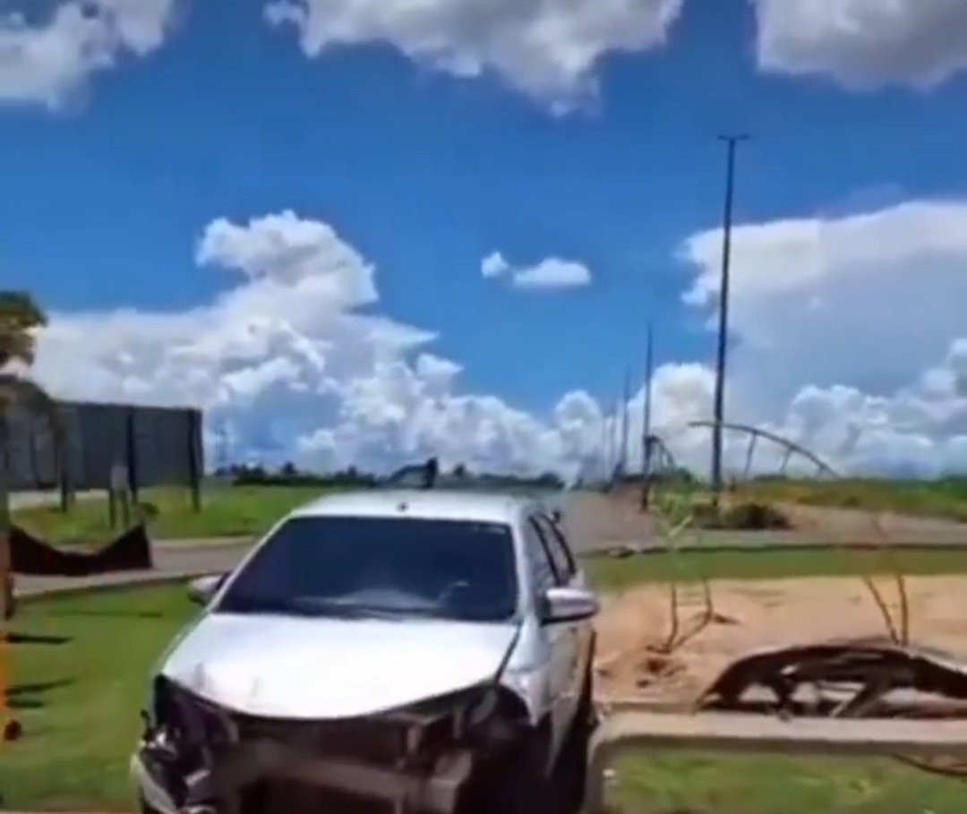 Vídeo: Carro invade praça em Primavera do Leste e destrói brinquedos