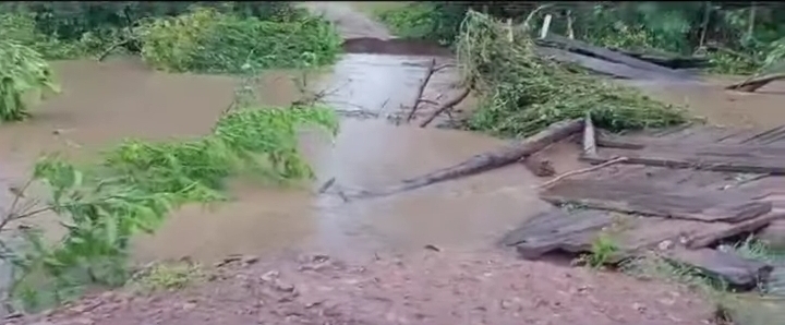 Moradores da comunidade Pindaival, no distrito de Arruda, zona rural de Rosário Oeste (MT), ficaram isolados após a enchente. A ponte de madeira sobre o rio Potreiro foi destruída pela força da água. Em vídeo enviado à TV Toninho de Souza, um morador afirmou que havia alertado a prefeitura sobre o risco de queda da estrutura.