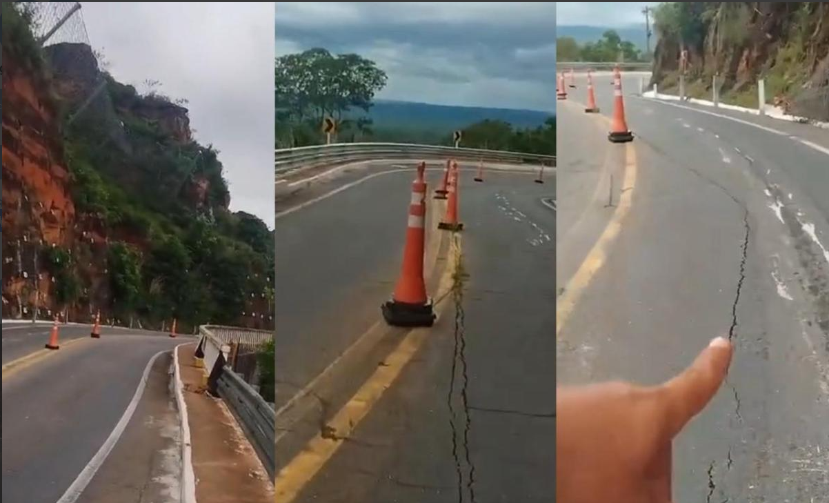 Um vídeo que circula nas redes sociais há cerca de dois dias, mostra uma extensa rachadura quilométrica no asfalto da Rodovia Estadual MT-251, trecho conhecido como Portão do Inferno, em Chapada dos Guimarães (67 km de Cuiabá). As imagens mostram uma fenda que se estende por boa parte da pista, levantando dúvidas sobre a segurança do local e a eficácia das intervenções realizadas pelo Governo do Estado.
