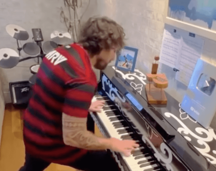 Hino do Flamengo é tocado no piano. O time de maior torcida no Brasil faz sucesso no campeonato mundial de clubes, nos Estados Unidos.
